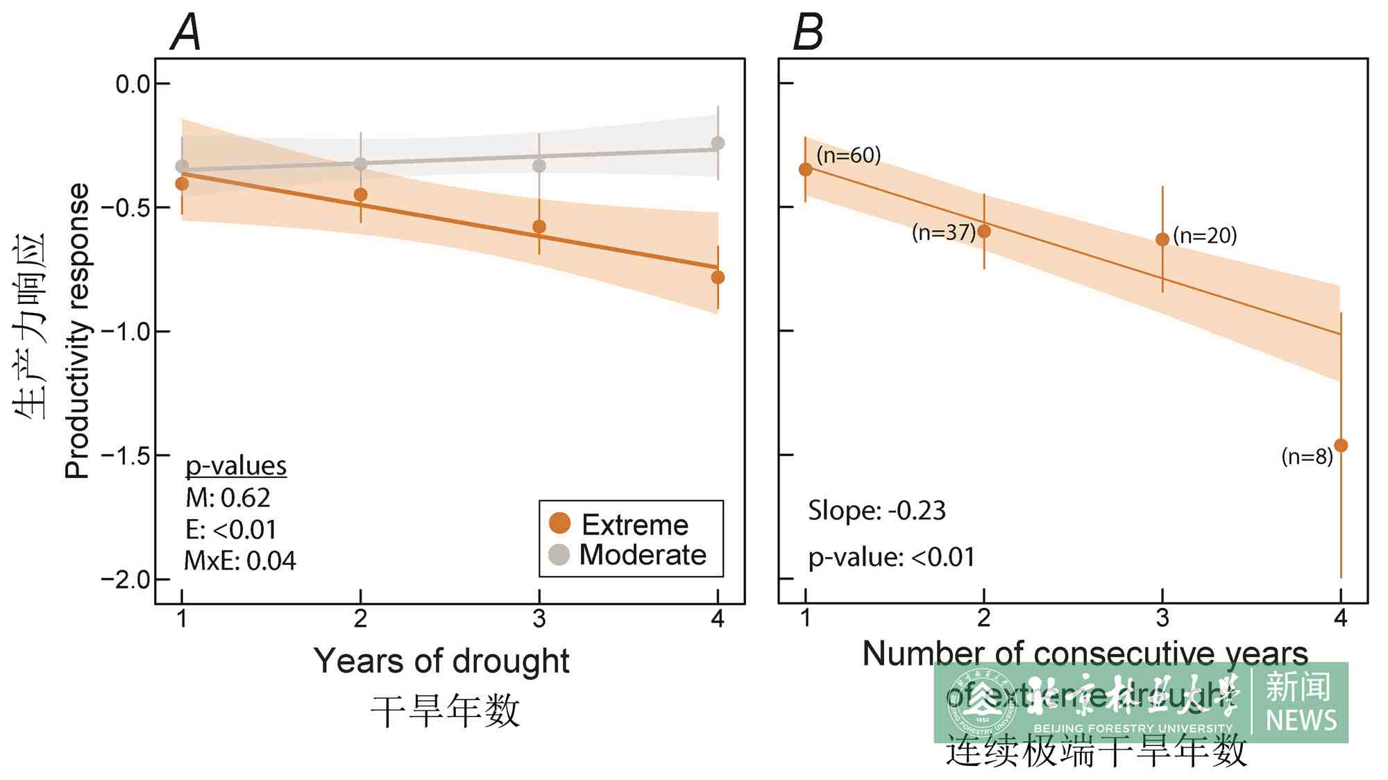 干旱持續(xù)時間對中等和極端干旱強(qiáng)度下生產(chǎn)力響應(yīng)的影響