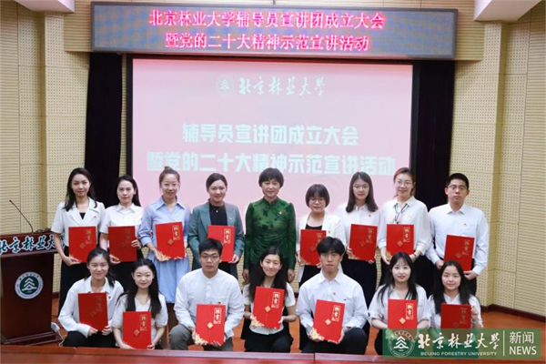 學工部負責人介紹了組建輔導員宣講團的總體考慮,宣讀了首屆輔導員宣講團名單,對黨的二十大專題宣講計劃做了說明。她希望輔導員充分發(fā)揮領(lǐng)學促學作用,教育和引領(lǐng)青年學生堅定理想信念、勇?lián)鷷r代使命。