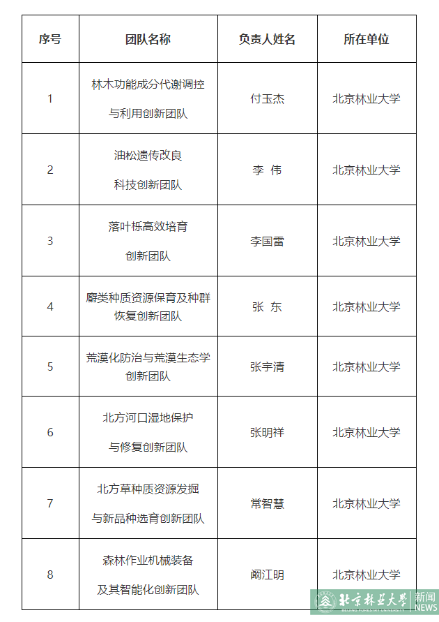 我校入選林草科技創(chuàng)新團(tuán)隊(duì)名單,按姓氏筆畫排序: