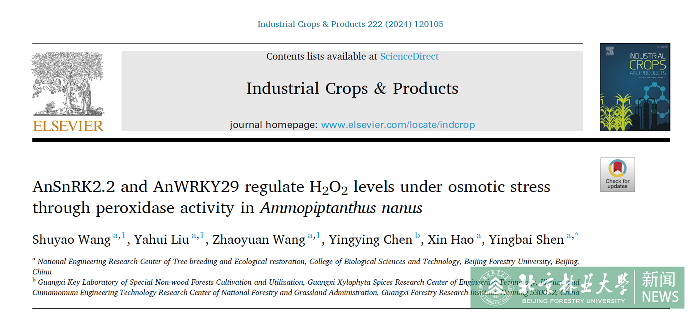 近日,生物科學(xué)與技術(shù)學(xué)院沈應(yīng)柏教授團(tuán)隊(duì)在《INDUSTRIAL CROPS AND PRODUCTS》(中國科學(xué)院一區(qū)TOP,影響因子:5.6)上發(fā)表了題為“AnSnRK2.2 and AnWRKY29 regulate H2O2 levels under osmotic stress through peroxidase activity in Ammopiptanthus nanus”的研究論文。研究揭示了新疆沙冬青(Ammopiptanthus nanus)通過增強(qiáng)植株內(nèi)過氧化氫(H2O2)的清除機(jī)制,從而增強(qiáng)了其對滲透脅迫的耐受性。此項(xiàng)工作能夠?qū)π陆扯嗟谋Wo(hù)和恢復(fù),以及對植物適應(yīng)逆境的研究產(chǎn)生積極貢獻(xiàn)。