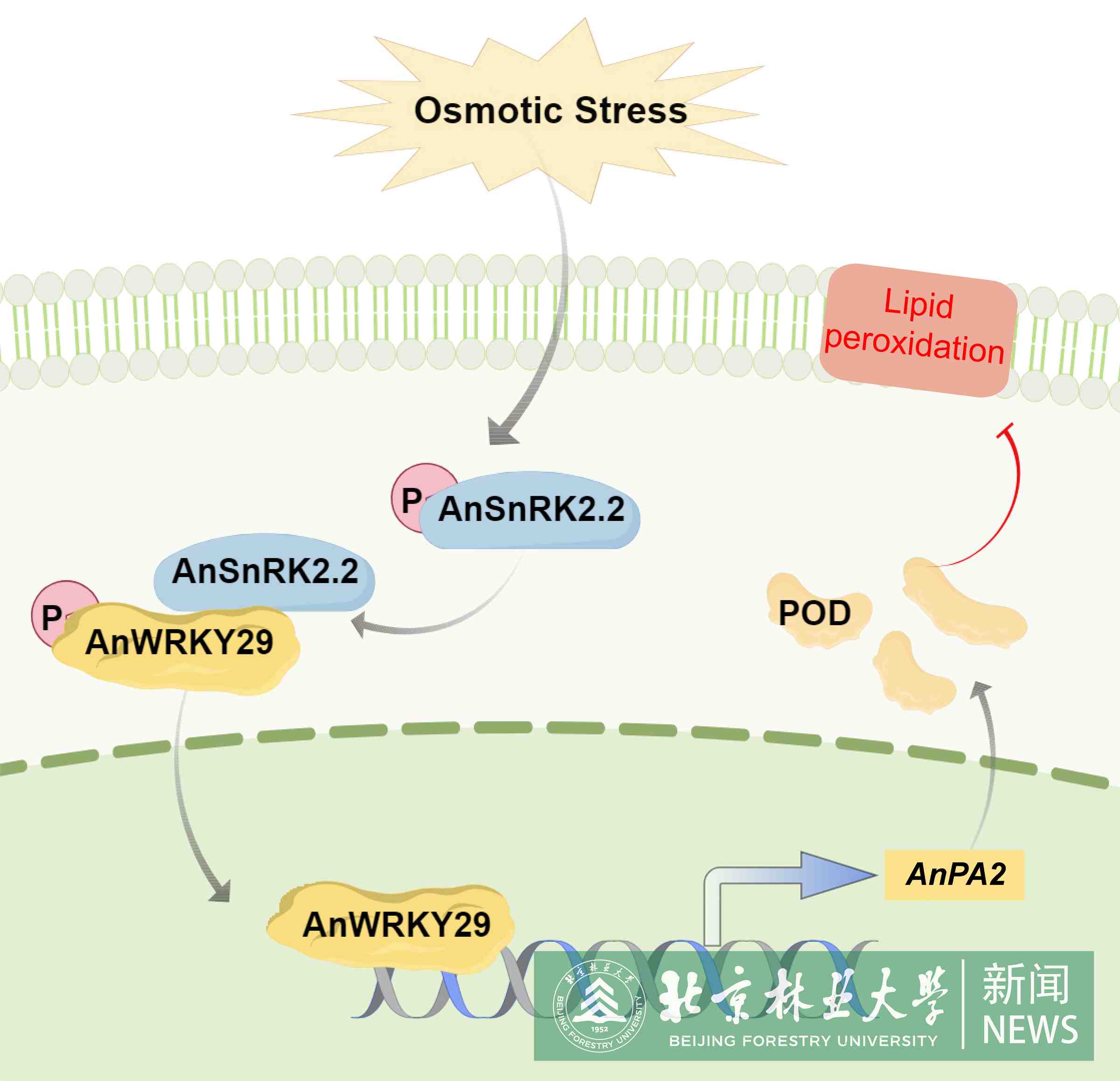 此外,由AnPA2編碼的38.5 kDa過氧化物酶,屬于植物過氧化物酶III類,對減輕新疆沙冬青中由H2O2誘導(dǎo)的膜脂過氧化起著關(guān)鍵作用。該研究揭示了AnWRKY29可以直接調(diào)控AnPA2的轉(zhuǎn)錄,從而影響過氧化物酶的合成。