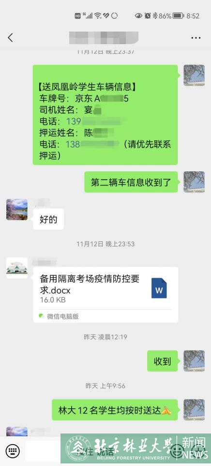 “老師,我們毛紡南小區剛通知要臨時封控,我還能回校參加考試嗎?”11月12日下午三點,園林學院的一名考生焦急地跟輔導員聯系。學校在充分研判風險等級的基礎上,協調由社區安排專人專車接送學生進校考試。