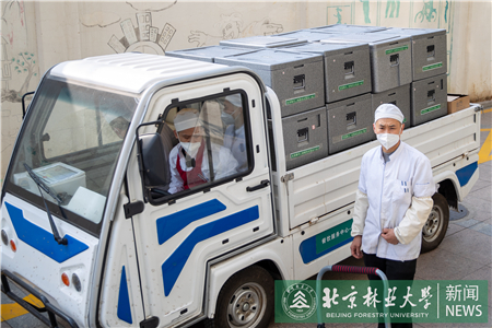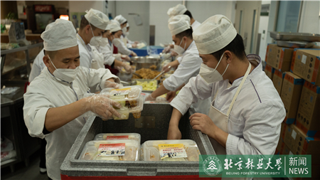 負(fù)責(zé)協(xié)調(diào)送餐的宋佩澤,是去年剛剛留校加入餐飲隊(duì)伍的畢業(yè)生。送餐的任務(wù)非常重,他和同事們忙完一頓緊接著忙下一頓,奔波于各個(gè)點(diǎn)位之間,還要兼顧一部分食堂生產(chǎn)的任務(wù)。他說(shuō),當(dāng)學(xué)生的時(shí)候完全不知道,每日三餐的背后需要付出這么多辛苦,現(xiàn)在明白了,餐飲隊(duì)伍可以自己餓著,但是師生決不能餓著。