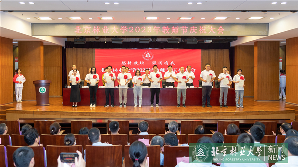 9月8日,北京林業大學2023年教師節慶祝大會隆重召開。全體校領導、獲獎教師代表、 國家級人才入選者、第四批赴內蒙古科右前旗支教教師、“從事教育工作滿三十年”教師代表、新入職教職工,以及學校相關部門負責人、各教學院(部)負責人、在職教師代表、機關干部代表和學生代表等參加會議。第五批赴內蒙古科右前旗支教教師線上參會。